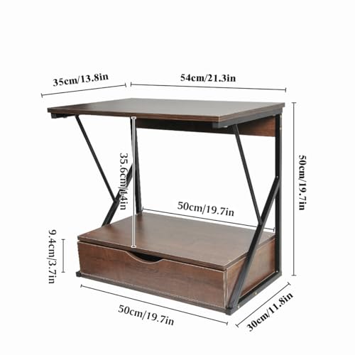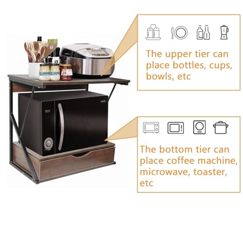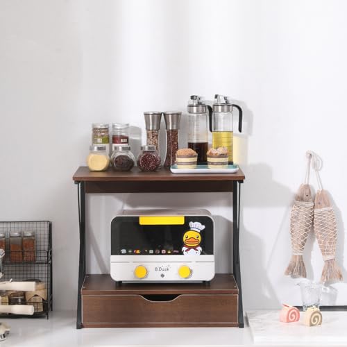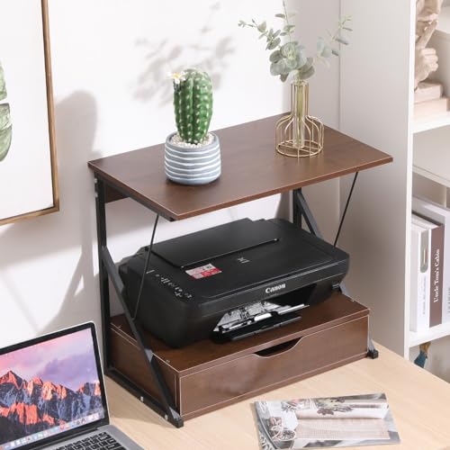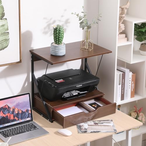 Sanery - حامل طابعة مكتبي من طبقتين مع درج، رف فاكس للمنزل والمكتب والطابعة والفاكس، رف فرن الميكروويف للمطبخ، منظم تخزين لسطح الطاولة لاواني التوابل والمقالي، بلوط داكن