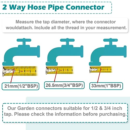 - 【متعددة الاستخدامات】وصلات ثنائية الاتجاه يمكن أن تلبي احتياجاتك المتعددة. موزع خراطيم الحديقة يناسب غسالة الصحون وغسالة الملابس في المطبخ، كما أنه مناسب للبستنة والتنظيف والري وغسيل السيارات والرش وما إلى ذلك.
