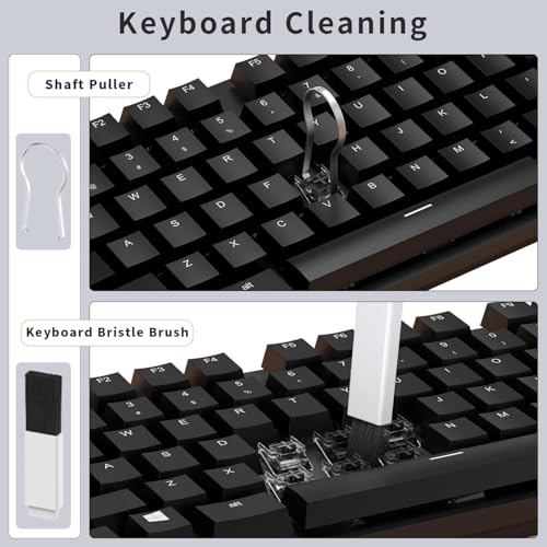 - 【Deep Cleaning keyboard】The high-density keyboard cleaning brush has moderately soft bristles, it can easily clean up the surface dust of the keyboard; The keycap puller and switch puller allow easy removal of parts. You can do a deeper cleanup with the help of the black hard bristle brush before replacing the parts for the keyboard