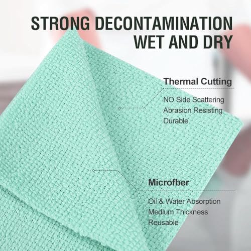 - HIGH WATER ABSORPTION: Its strong water absorption capacity allows moisture to be absorbed quickly, keeping surfaces dry and effectively preventing water and water stains, making the cleaning process more efficient. SUPERIOR ABSORBENT: The fabric has a unique fiber structure with exceptional absorption ability, allowing it to pick up small dust particles and bacteria, ensuring a clean environment and promoting cleaning performance. EASY TO USE: The microfiber cleaning cloth is easy to apply and effortlessly clean once you rinse it out. This makes cleaning a breeze, saving time and energy, and making cleaning tasks more enjoyable.