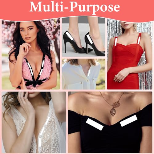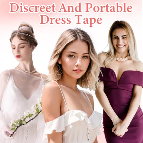 Bremorou - 200 شريط مزدوج الجوانب لشرائط الملابس، شريط عصري للفساتين للنساء، شريط مزدوج الجوانب للملابس للبقاء في مكانه لجميع ظلال البشرة، لاصق غير مرئي ولطيف على البشرة، شفاف، 3.35