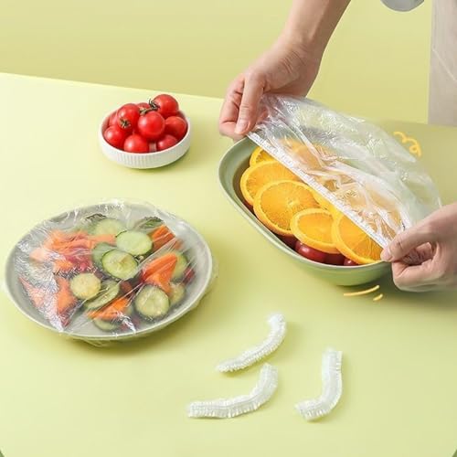 CYMYGS - 200 Pcs Shrinkable Food Covers, Fresh Keeping Bags, Reusable Plastic Food Covers Plastic Stretch Lids Bowl, Elastic Storage Cling Film Bag for Fruit Vegetable Meat Food Preservation