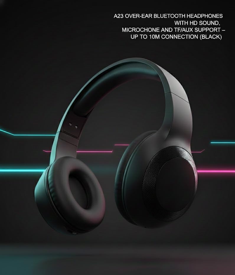 Generic - هيدفون على الأذن لاسلكية/سلكية مع ميكروفون وإلغاء الضوضاء - بطارية 200mAh وتشغيل حتى 5 ساعات – دعم بطاقة TF - موديل A23