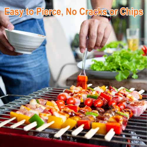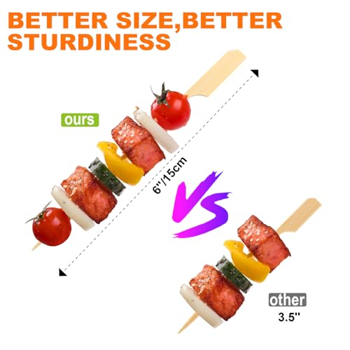 - LONGER SIZE & MORE USEFUL: Our 6-inch long bamboo skewers is longer than the regular 4.7-inch wooden skewers. As a result, it can hold more appetizers, fruits, and vegetables, or thicker sandwiches and hamburgers. You can use it to handle large amounts of food, create more complex cocktails and mixed drinks. Make your party food more attractive and impressive.