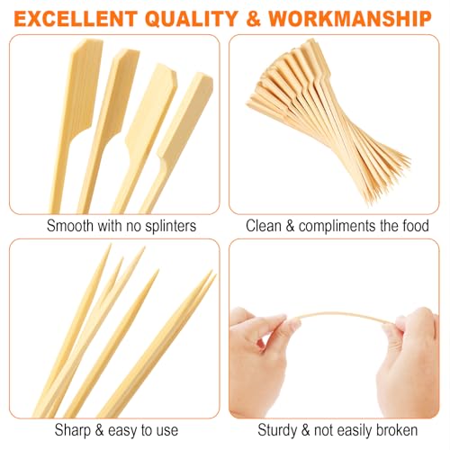 DOUDOULE - 200PCS Bamboo Skewers for Appetizers, [6 Inch] Long Cocktail Picks Fancy Toothpicks for Appetizers, Flat Paddle Wooden Skewers Food Sticks for Party Drinks Fruit BBQ, Charcuterie Boards Accessories