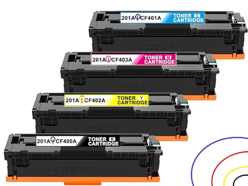 - 201A خراطيش حبر عالية الإنتاجية بديلة للقطع رقم 201A CF400A 201X CF401A CF402A CF403A مجموعة خراطيش حبر لطابعة برو MFP M277dw M277c6، مجمعة من 4 عبوات بألوان أسود /سماوي/ أرجواني/ أصفر. الإنتاجية: حقق أقصى قدر من كفاءة الطباعة باستخدام خرطوشة الحبر 201A هذه.