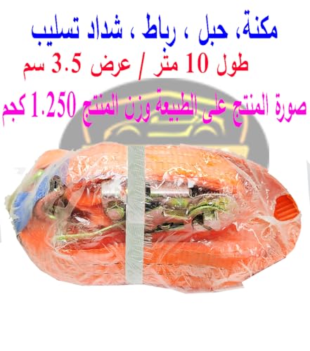 Generic - 2020 KaberMisr 2020 Heavy Duty Retractable Ratchet Strap with Double Hook for Fastening and Moving Luggage, Furniture, Cargo for Trucks, Cars, Bicycles (Tow Machine 10 Meter Length, 3.5 cm Wide)