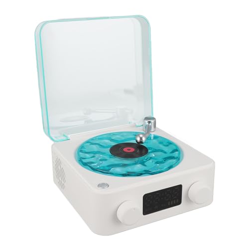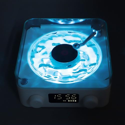 MENDUNER - مكبر صوت اكوا 2024، قرص دوار مموج، مكبر صوت بنمط قرص دوار مع ضوء ليلي وعرض الوقت، مكبرات صوت ستيريو صغيرة متعددة الوظائف 3 في 1، ابيض، فينتاج