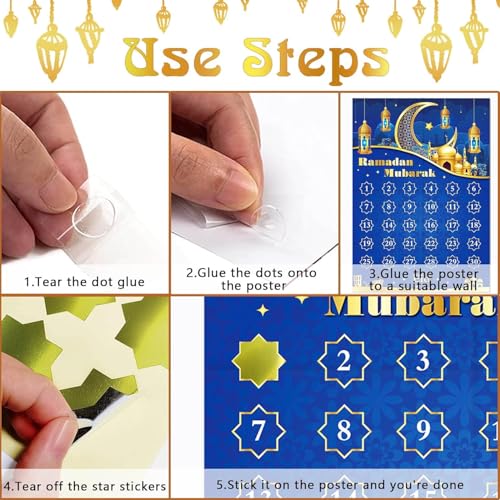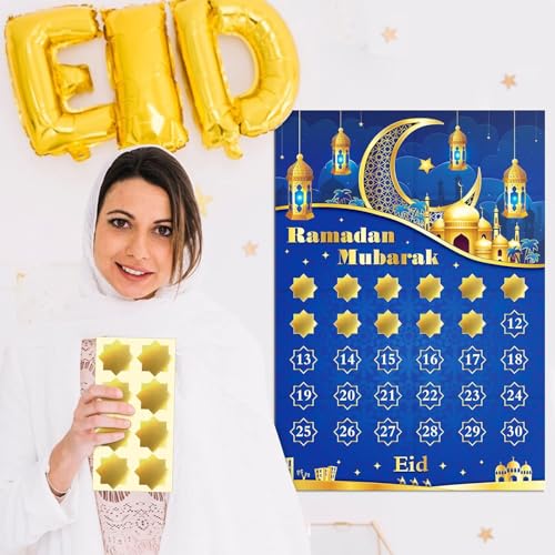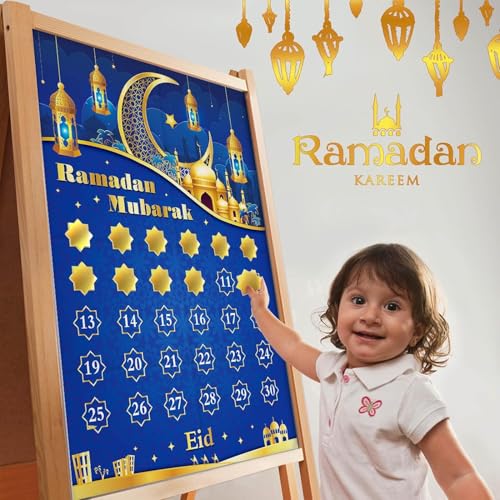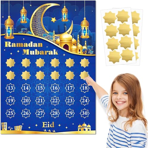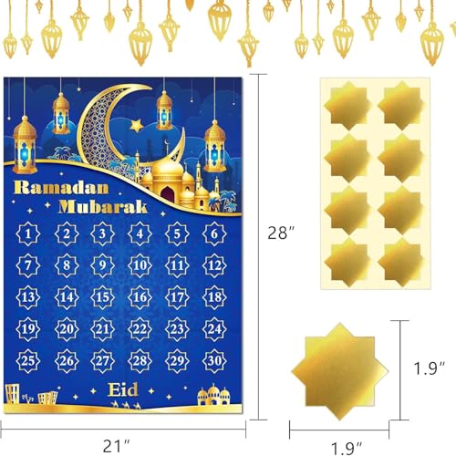 Generic - تقويم رمضان 2025، العد التنازلي، تقويم رمضان لأنشطة الاطفال مع 30 قطعة من النجوم يتم لصقة علي الايام المنتهية من الشهر ، ديكور رمضان