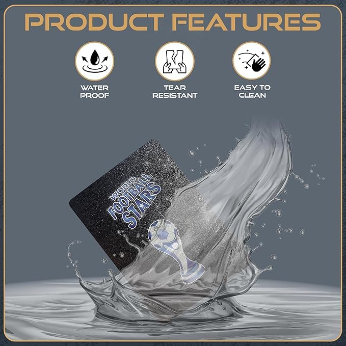 - مجموعة تذكارية شاملة: استعد لإثارة كرة القدم مع 55 بطاقة فريدة تضم أشهر نجوم الكرة العالميين. تصميم عصري وألوان حيوية تجسد أجمل لحظات اللاعبين على أرض الملعب.