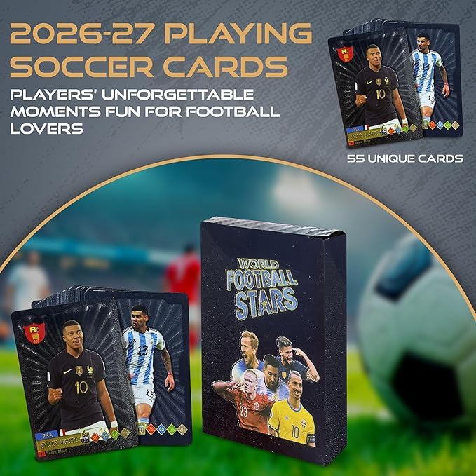Generic - مجموعة بطاقات نجوم كرة القدم العالمية 2026-2027 - إصدار الأساطير (55 بطاقة فريدة) - بطاقات لعب فاخرة، مقاومة للماء والتمزق، مرنة وعالية الجودة لهواة التجميع والمشجعين
