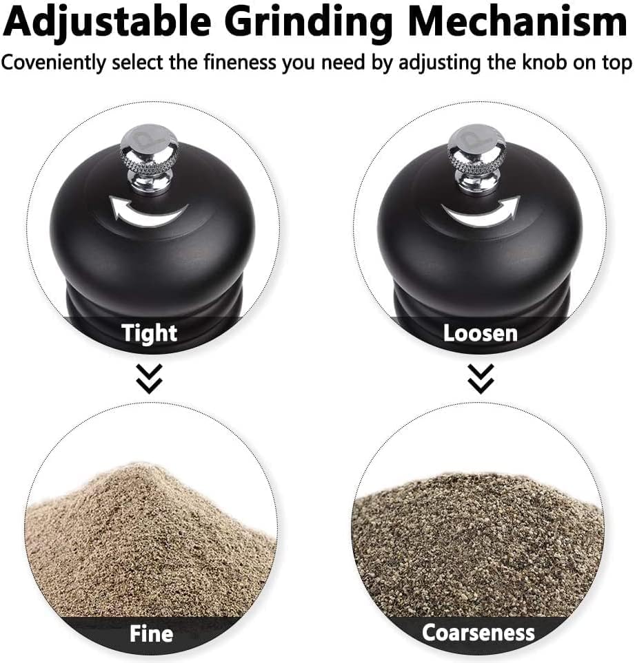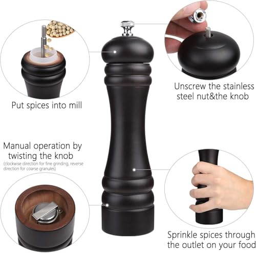 - EASY TO USE AND REFILL - This continuously reliable pepper mill features a finely to coarse mill with a maximum of 1/16 inches, milling is easily changed by wrapping nuts at the top of the mill from loose to tight for precision required according to your needs, counterclockwise for extra clockwise roughness for smooth precision.