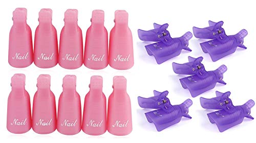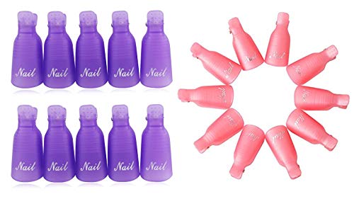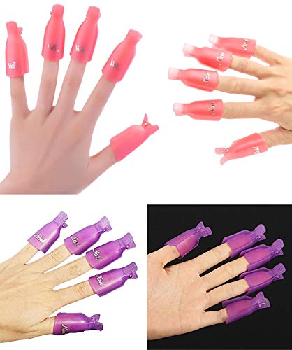 Generic - 20 قطعة من مزيل طلاء الأظافر من الأكريليك ، منظف فائق للنقع بدون غطاء مشبك جل الأشعة فوق البنفسجية ومزيل طلاء الأظافر (10 قطعة بنفسجي و 10 قطعة وردي)
