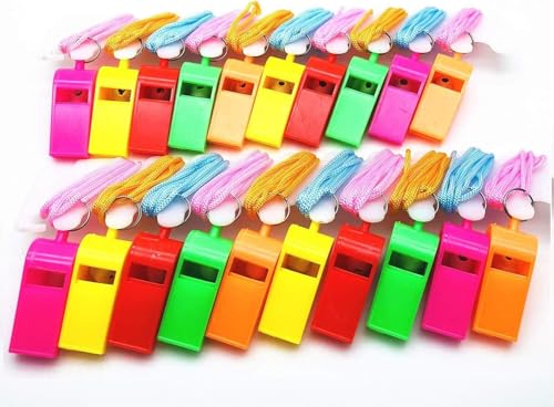 Generic - 20pcs Neon Plastic Colorful Whistle Necklace Loud Crisp Sound Coaches Referee Whistle with Lanyards for Football Sports Lifeguards Survival Emergency Training