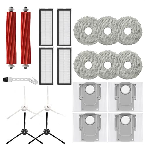 BARUITE - 21Pcs Accessories Kit for Roborock Qrevo S/Qrevo Pro/Qrevo Plus/Qrevo MaxV Robot Vacuum Cleaner Replacement Parts. 2 Main Roller Brush, 4 Hepa Filters, 6 Mop Pads, 4 Side Brushes, 4 Dust Bags, 1 Brush