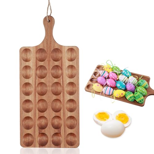 generic - 24 Holes Wooden Deviled Egg Platter, 17.11 x 7.8in Thickened Deviled Egg Tray for Party, Rectangle Deviled Egg Plate Holder Refrigerator Egg Container for Easter Christmas Kitchen Countertop