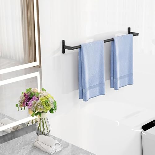 KLJKPA - 24 Inch Matte Black Towel Bar for Bathroom, Towel Racks for Bathroom Wall Stainless Steel, Heavy Duty Bathroom Towel Rod Wall Single Towel Bar