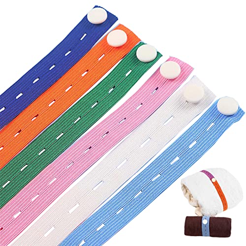 Meboltpan - 24 PCS Flat Elastic Band with Buttonholes for Binding Clothes, Towels, Multifunctional Elastic Strap Elastic Cord with Buttonhole for Tying and Organizing 0.79x12.99in/piece Random Color (24)