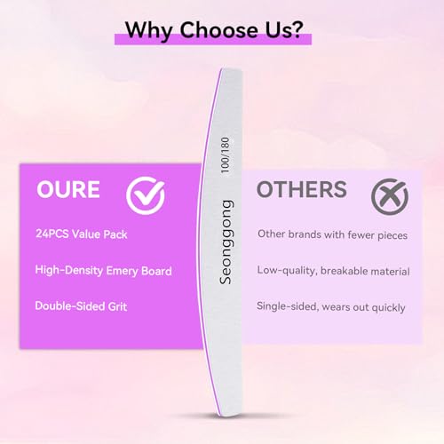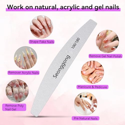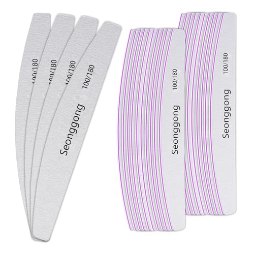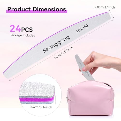 Seonggong - 24 PCS Nail File 100/180 Grit Nail Files for Women Double Sided Emery Board Fingernail Shaping Manicure Pedicure Tools for Natural Nails Nail Supplies Salon and Home Use