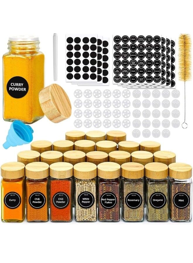 generic - 24-Piece Glass Spice Jar Set with Airtight Bamboo Lids - 120ml Empty Square Spice Containers with Shaker Lids, Labels, C