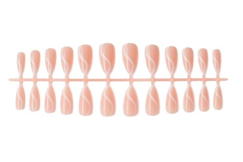 Generic - 24-Piece Nude Pink Press-On Nails Set – Swirl Design – Glossy Medium False Nails – Natural Look, Easy Application, Long-Lasting - French Nails - 1 Sheet - 24 Nail Pieces