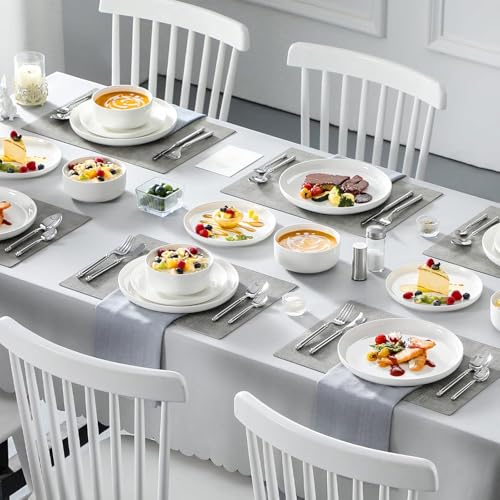 - ما تحصل عليه: مجموعة عشاء بيضاء مكونة من 24 قطعة من سلسلة لوكا تتضمن أطباق عشاء 6 × 10.25 بوصة، أطباق حلوى 6 × 8 بوصة، أطباق شوربة 6 × 8 بوصة و6 × أوعية حبوب 700 مل. يعتبر طقم أدوات المائدة هذا لـ 6 أشخاص هو الخيار الأمثل للأسر الصغيرة أو الأزواج أو الأفراد ويلبي جميع احتياجات تناول الطعام الخاصة بك.