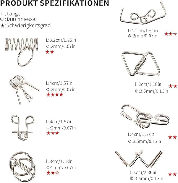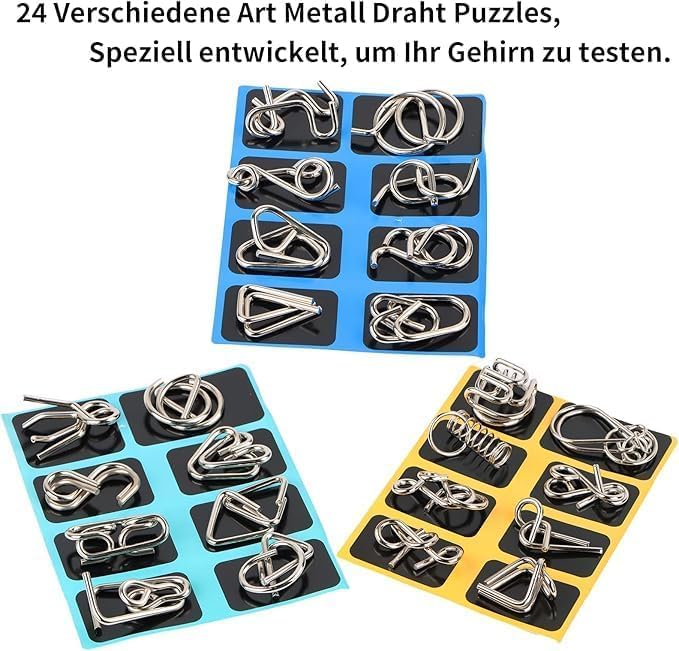 Generic - 24 Piece Puzzle Games Metal, Metal Puzzle Toy, Patience Games, IQ 3D Brainteaser Wire Set, Mini Gift for Adults and Children