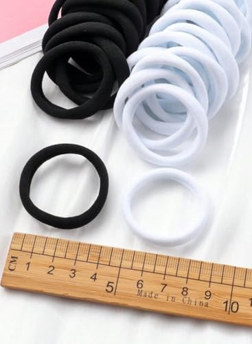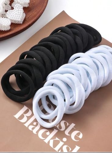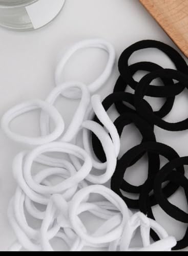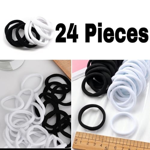 - 【NATURAL COLOR】black and white color can easily match different hair colors, also can match all your dressing and hairstyles. 24 pcs white hair ties are economical to use for a long time. Suitable for ponytail holder for daily use and workout