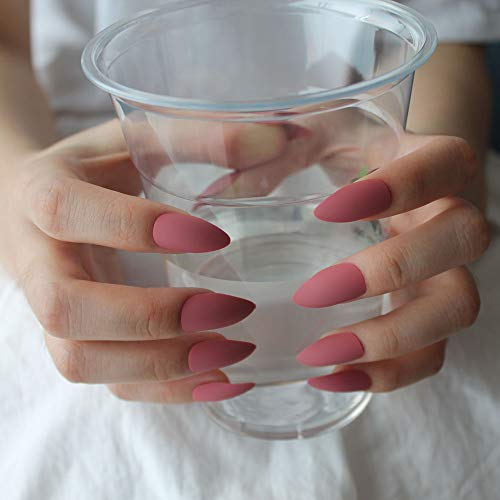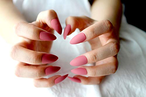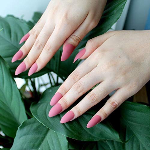 Generic - 24 قطعة من الاظافر الرائعة مع لمسة نهائية من طلاء الاظافر بشكل مدبب (بينك فاتح)