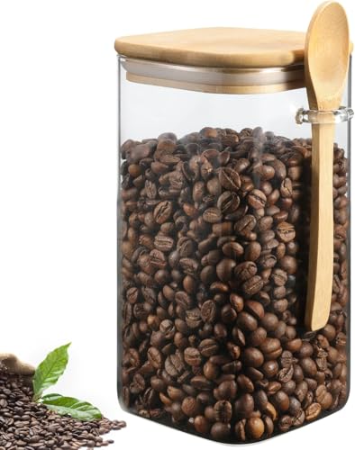 - 【Space Saving Square Design】 The jar features a squared design that helps save space on shelves and cabinets and creates a tidy look when laying more than one jar beside each other, making it easier to arrange your kitchen in an orderly and offers an effective storage way for spices, legume and nuts while maintaining a sleek and attractive shape suitable for any kitchen decor. 1 X