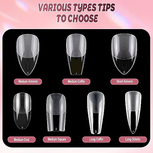 - 【COMPLETE COVERAGE WITH GEL TIPS】Our full cover gel nail tips are made of soft soak-off gel material, perfect for nail art enthusiasts who want to avoid damaging their natural nails. It can solve most of the customers' troubles due to folding cracks and relieve pressure on fingers. It is very breathable and durable, making the full nail tips fit your natural tips better. Also it is easier and more natural for you to use.