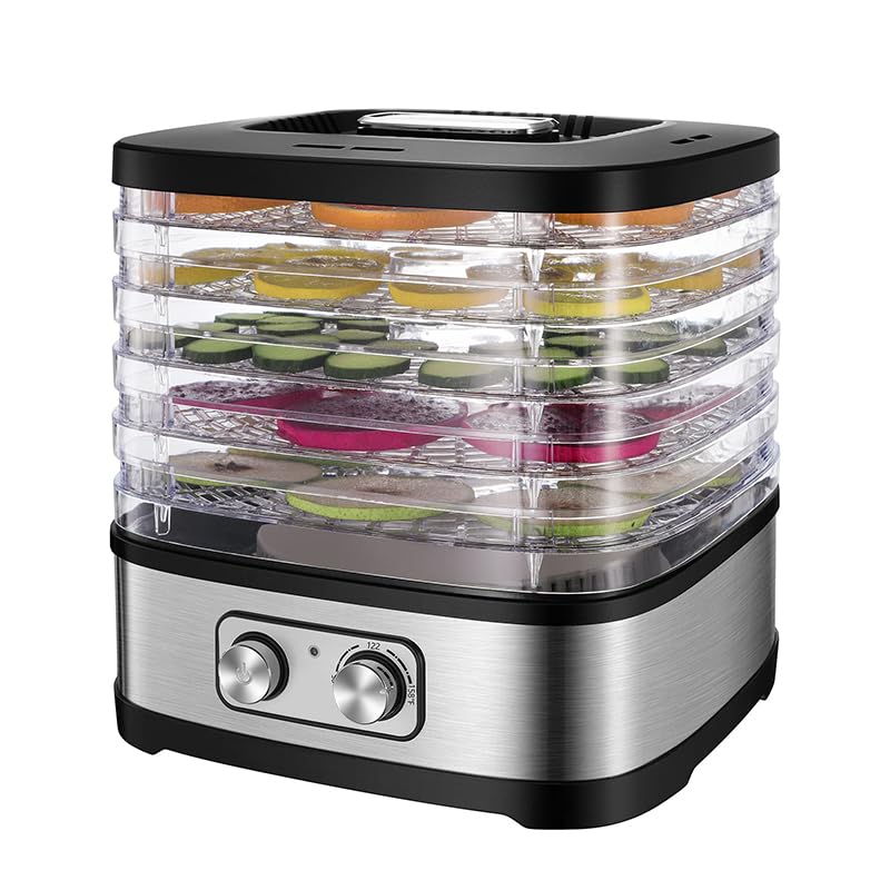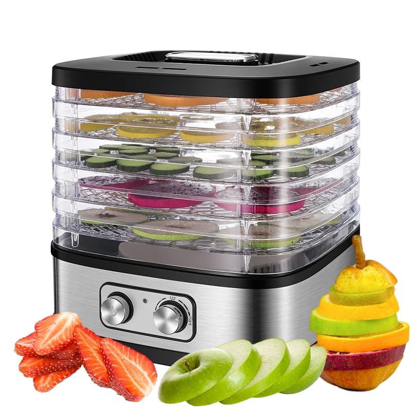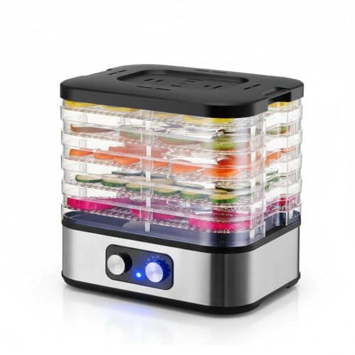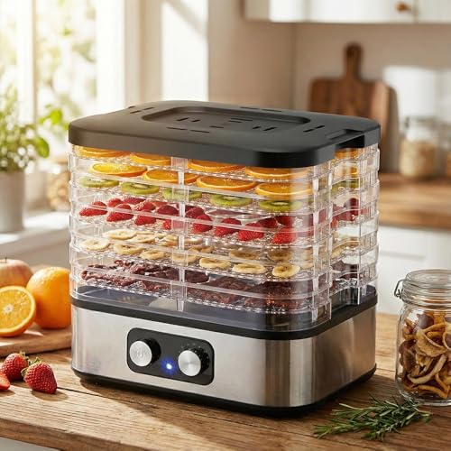 Generic - مجفف طعام 5 طبقات بقدرة 240 واط – هيكل ستانلس ستيل وصواني قابلة للفك – منظم حرارة يدوي بدرجة حرارة 35 إلى 75 مئوية – تشغيل هادئ لتجفيف الفواكه والخضروات واللحوم – ضمان 12 شهر
