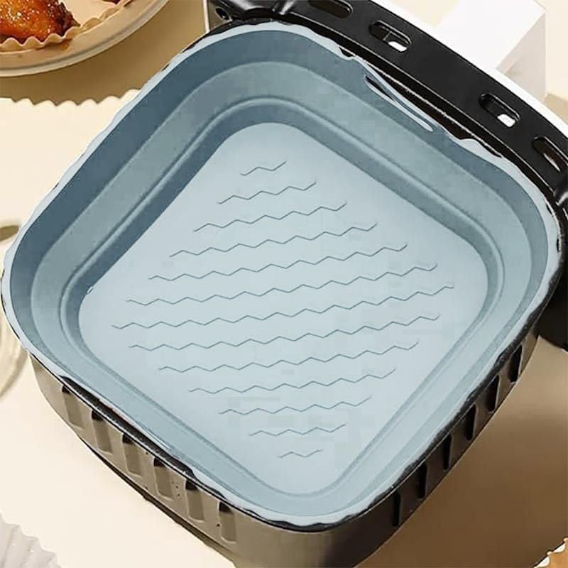 - JUMBO 24CM SQUARE DESIGN: Perfectly sized for most square air fryers, this large 24cm silicone liner provides ample cooking space for cakes, pastries, vegetables, chicken, and snacks while protecting the basket from grease and residue buildup.