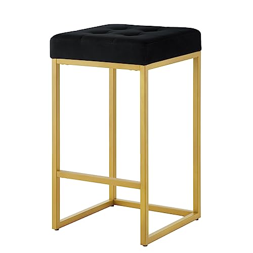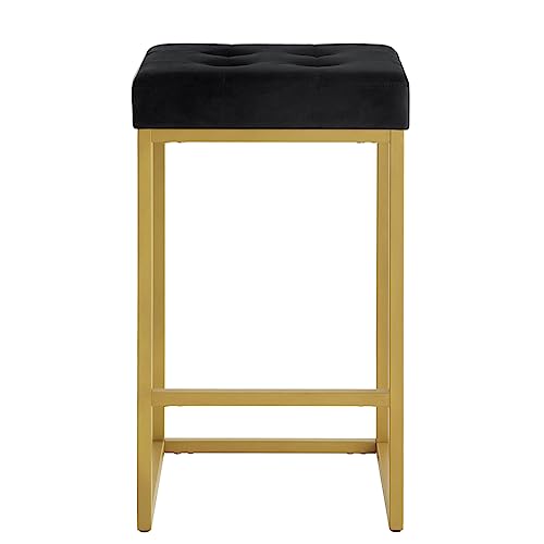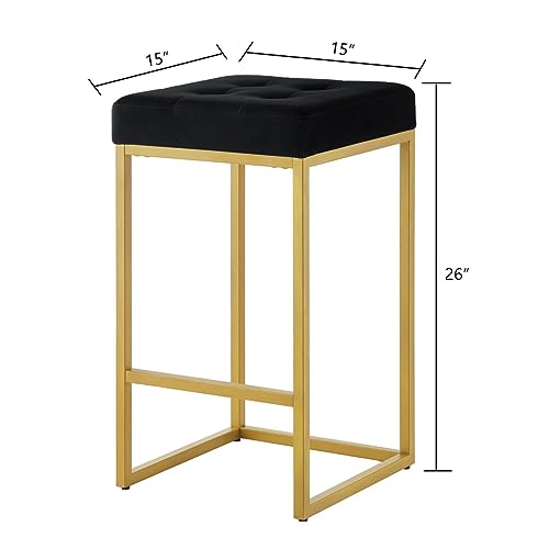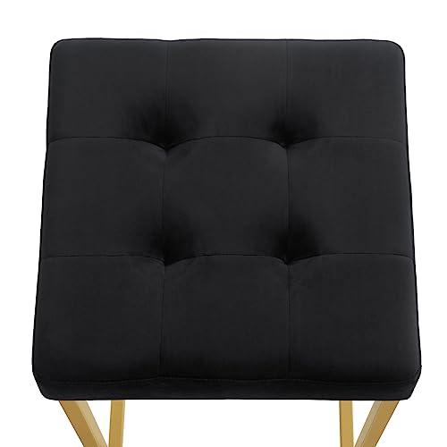 24KF - 24KF Contemporary 26" H Counter Height Stool with Tufted Seat, Velvet Padded Barstool with Durable Golden Met Balase,Set of 2,5066-Black