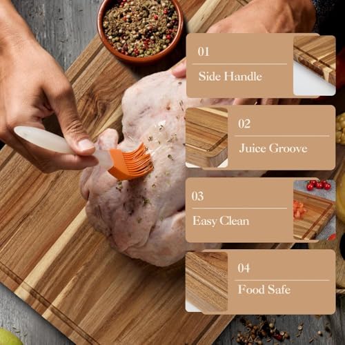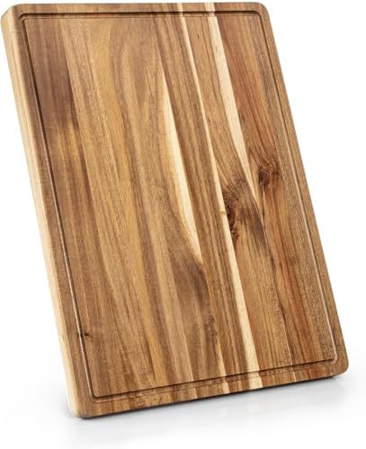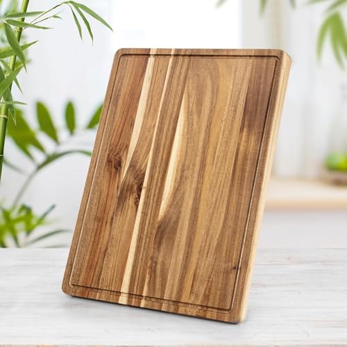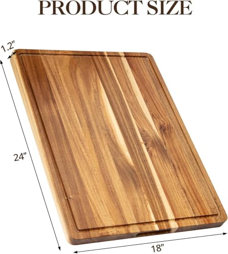 - Extra-Large 24×18×1.2 Inch Acacia Wood Surface:Crafted from premium natural acacia wood, this generously sized 24×18×1.2 inch cutting board delivers a spacious, rock-solid prep station. It’s tailor-made for home chefs tackling large cuts of meat, heaps of veggies, or bulk meal prep sessions—no more juggling ingredients or cramped workspace!
