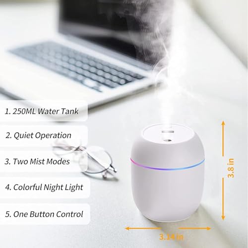 Generic - 250ml Portable Air Humidifier with 7-Color LED Night Light - Quiet Ultrasonic Operation & 2 Mist Modes - USB Powered Desktop Humidifier for Office, Bedroom & Car