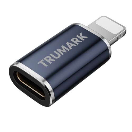 Trumark - 27W Lightning Male to USB-C Female Adapter, Aluminum Alloy, Fast PD 27W Charging & Data Sync (Dark Blue)