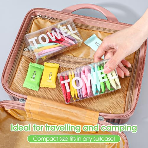 Telooco - 28 Pack Disposable Compressed Face Towels, Portable Compressed Towels for Travel Ultra-Quick Absorbent Towel Tablets Soft Large Size Cotton Facial Washcloth for Travel Outdoor Camping Hotel Gym Hiking