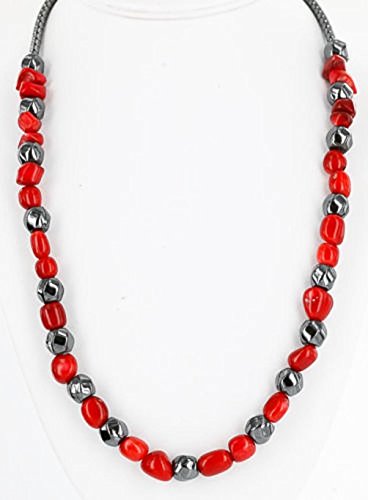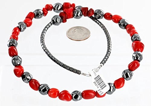 Native-Bay - قلادة نافاجو ان فضية معتمدة من حجر الدم المرجاني 25214-103 لوما سيفا