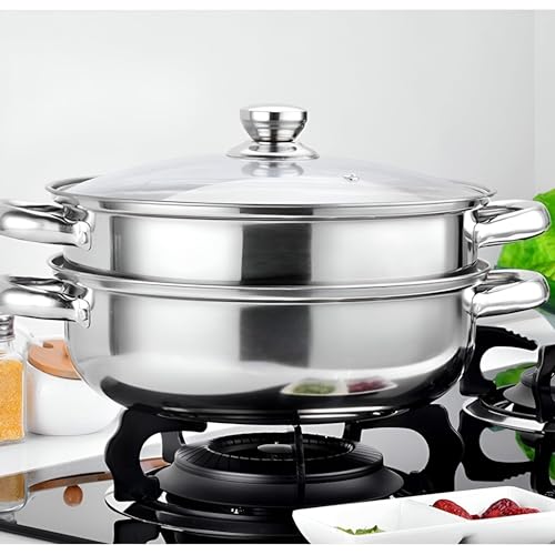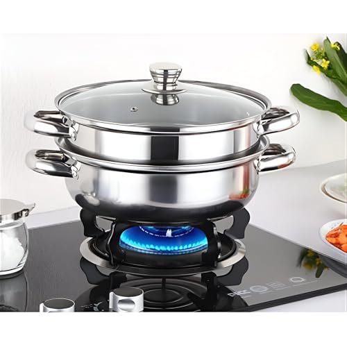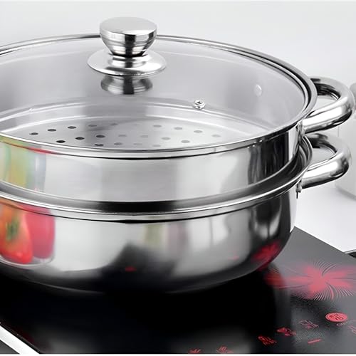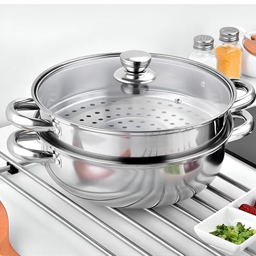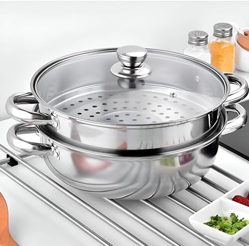 Generic - 28cm Stainless Steel Steamer - Cook with Confidence using the 28cm Stainless Steel Steamer, 2 Tier, Side Handles and Durable Glass Lid, Perfect for Gas and Walsh Cooking