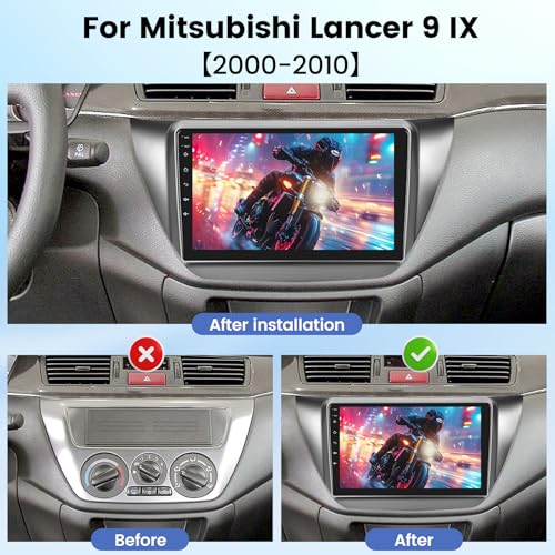 - 【Applicable Car Models】The car radio for Mitsubishi Lancer 9 IX 2000 2001 2002 2003 2004 2005 2006 2007 2008 2009 2010. Plug and play. Comes with a frame (Please double check your car model/year/shape of the center console of your vehicles with our Installation Photo before purchasing. If you are not sure, please contact us