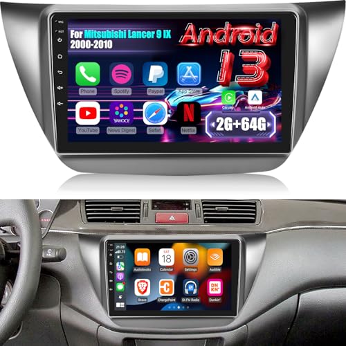 EKAT - [2G+64G] Radio for Mitsubishi Lancer 9 IX 2000-2010, Android 13 Car Stereo with 9 inch Touch Screen, Carplay/Android Auto/1080P/Bluetooth/WiFi +AHD Backup Camera
