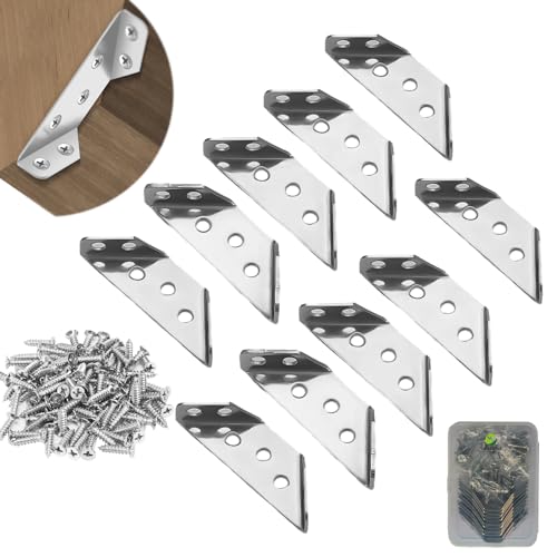 - 【Universal Stainless Steel Furniture Corner Connectors】- Receive 10 universal stainless steel furniture corner connectors and 70 screws And a loading box. to secure various furniture types, such as beds, cabinets, tables, and chairs. Provides exceptional stability and load-bearing capacity, ensuring furniture remains stable and durable for long-term use.