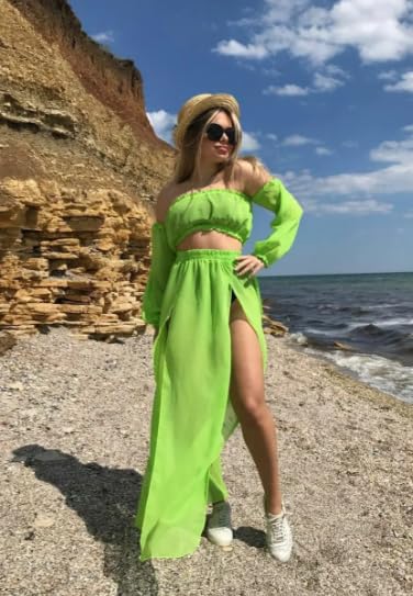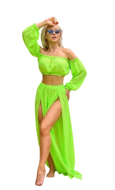 Generic - 2pack Mesh Frill Trim Cover Up Top With Skirt green,Summer Beach-ONE SIZE FITS ALL