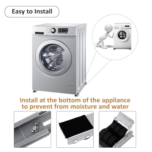 - EASY ASSEMBLY: No complex installation required for the washing machine stand. Simply place brackets under appliance corners to move, then step on brakes to secure.