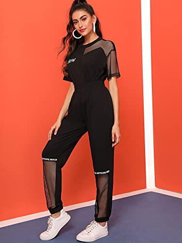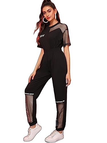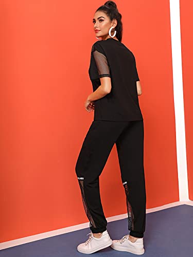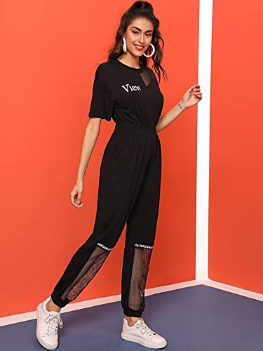 SHEIN - 2pc Women Clothing Set Women Mulvari Letter Graphic Fishnet Insert Top Pants Set
