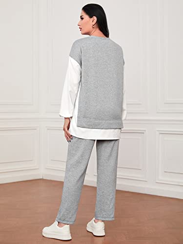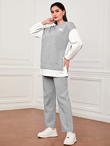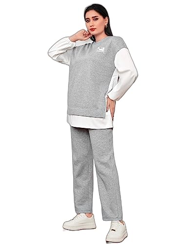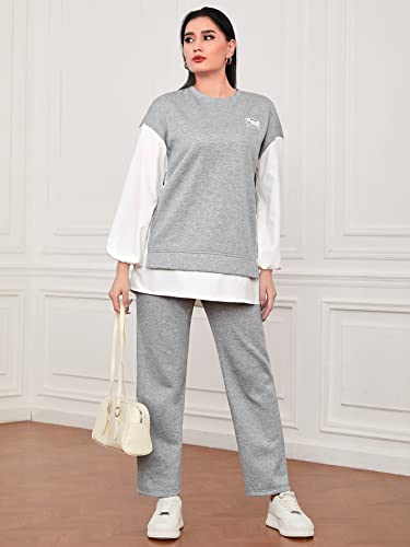 SHEIN - 2pc Women Clothing Set Women Mulvari Letter Patched Drop Shoulder 2 In 1 Sweatshirt Pants