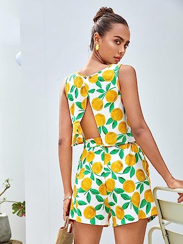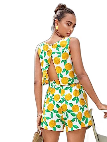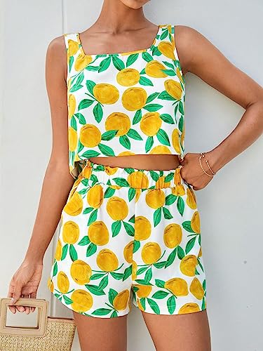 SHEIN - 2pc Women Clothing Set Women VCAY Lemon Print Tank Top Shorts