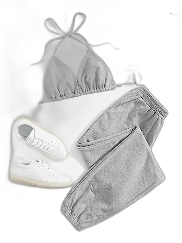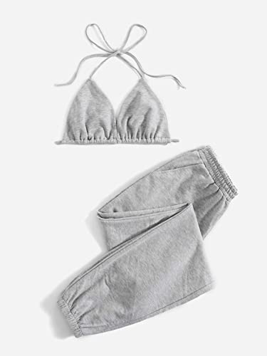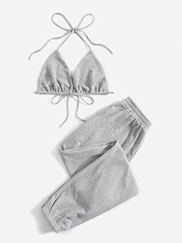 SHEIN - 2pc Women Clothing Set Women VCAY Solid Crop Halter Top Sweatpants