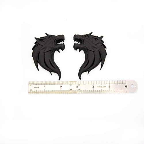 fashion mania - قطعتان من شعار معدني ثلاثي الابعاد بتصميم راس ذئب للسيارات والدراجات النارية والرفرف الجانبي والخلفي